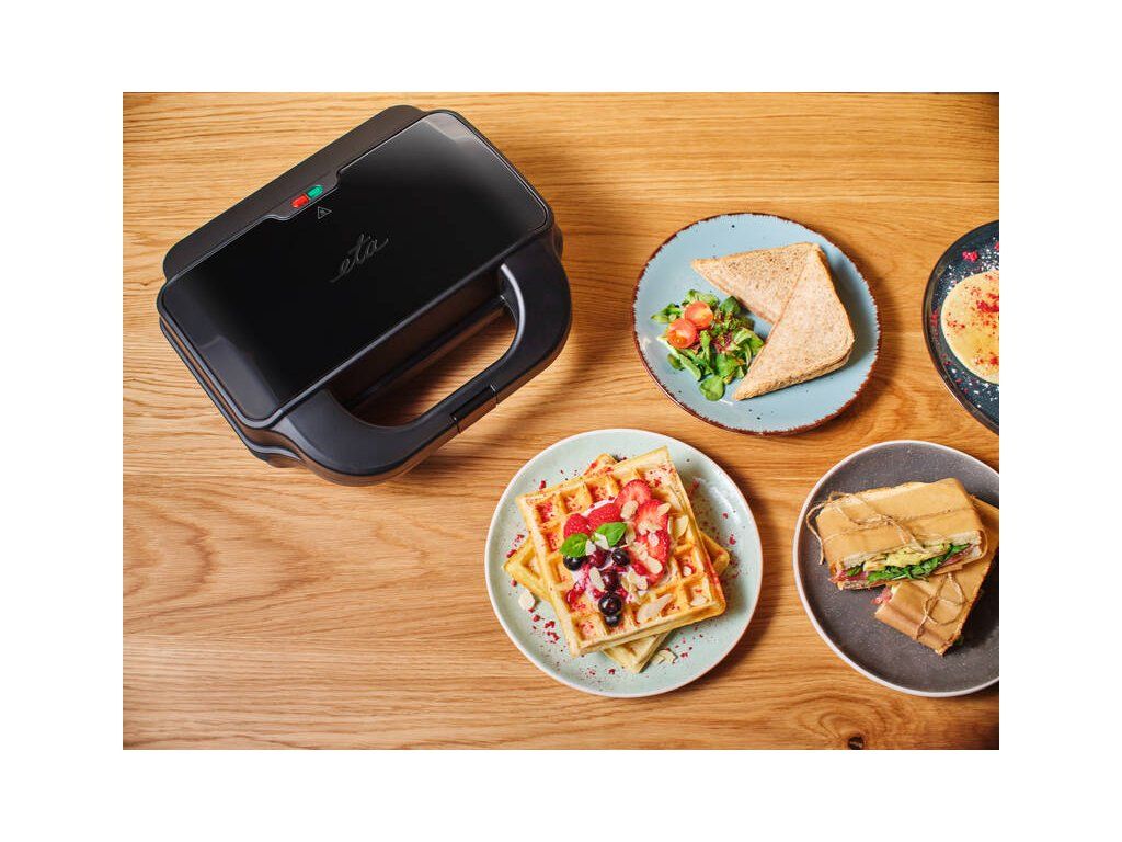Sendvičovač ETA Sorento Plus 5151 90000 s příkonem 900 W se díky svému všestrannému použití stane oblíbeným členem vaší rodiny. Malí i velcí – každý si na něm zvládne připravit to své.Přístroj je dodáván s 11 výměnnými deskami, které vám umožní připravit nejrůznější typy pokrmů. Kromě klasických trojúhelníkových toustů vytvoříte například vafle, panini, lívance a koláčky pro děti. Můžete jej použít také jako kompaktní domácí gril.