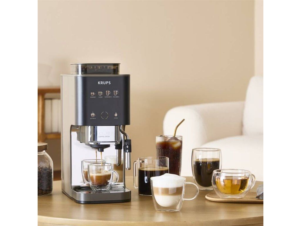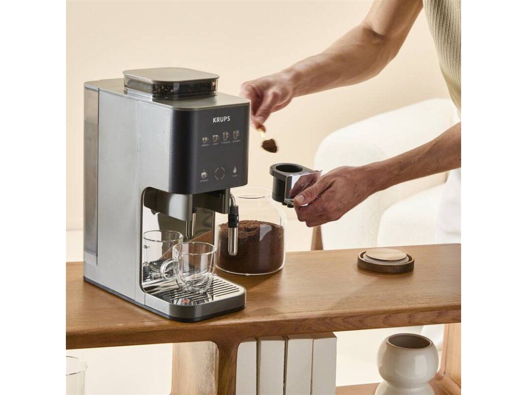 Domácí káva se stává zážitkem s Krups Coffee Crush Experience SA403BE0. Vychutnejte si intenzivní chuť čerstvě mleté kávy v dokonale kompaktním provedení. Integrovaný nerezový mlýnek s 5 stupni mletí namele zrna ideálně pro zvolený nápoj a tlak 15 barů zajistí plnou extrakci aroma i chuti. Díky intuitivnímu nastavení intenzity, objemu a teploty si připravíte espresso, lungo i filtrovanou kávu podle svých preferencí, zatímco napařovací tryska umožní přípravu cappuccina i horké vody na čaj. Praktická zásuvka na mletou kávu nabídne flexibilitu například pro bezkofeinovou variantu. Šířka pouhých 15 cm šetří místo na kuchyňské lince a snadná údržba po každém cyklu zajišťuje maximální komfort při každodenním používání.