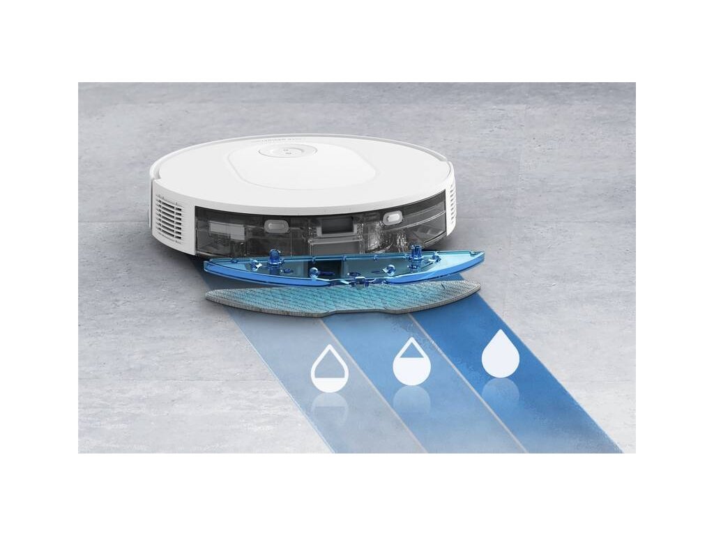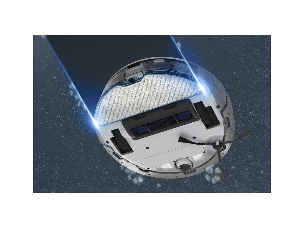Perfektní úklid v jednom kroku – vytírání i vysávání – mop s možností regulování vody, boční kartáčky pro hůře dostupná místa, elektrický kartáč pro sběr zvířecích chlupů. Po provedeném úklidu vysavač sám zaparkuje do stanice pro automatické dobití. Doba nabíjení do plna jsou 4 hodiny.